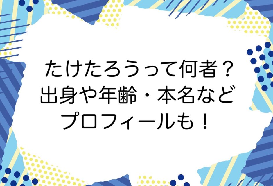 なんて疑問をお持ちのアナタのために、たけたろうさんは何者なのか、出身や年齢などのプロフィールについても調査・まとめました!