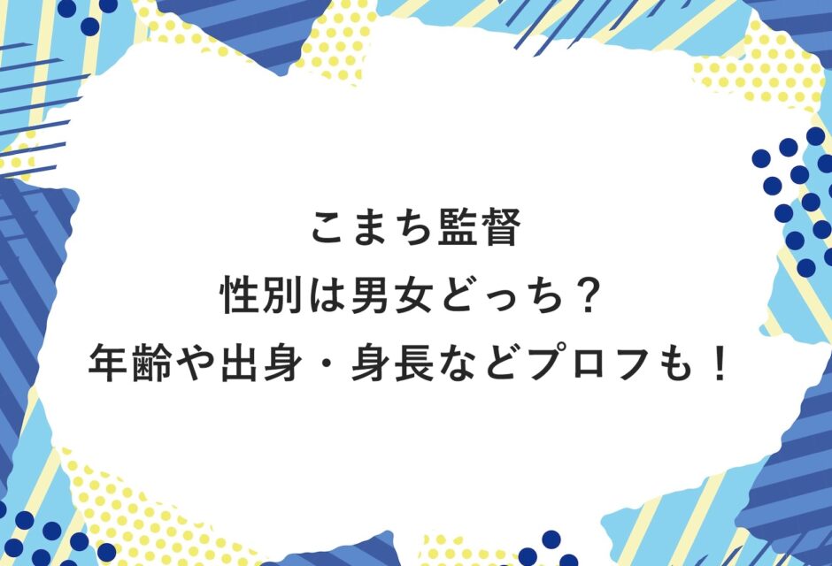 なんて、疑問をお持ちのアナタのために、こまち監督さんの性別や年齢や出身・身長などプロフィールについて調査・まとめました!