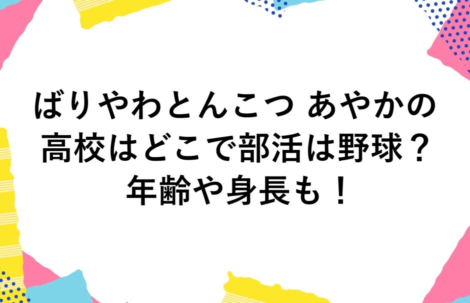 なんて疑問をお持ちのアナタのために、あやかさんの高校や部活、年齢や身長についても調査・まとめました!