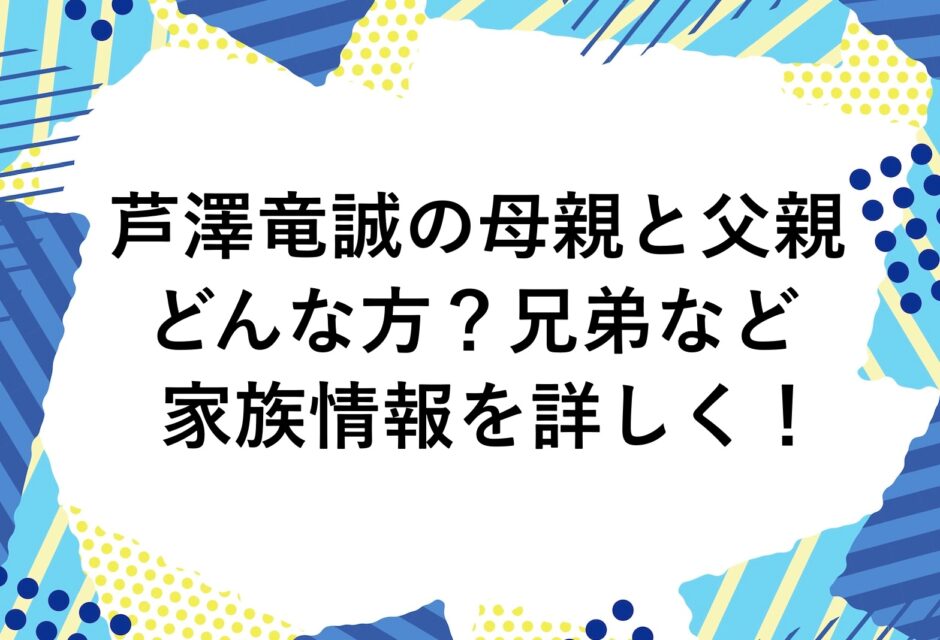 なんて疑問をお持ちのアナタのために、芦澤竜誠さんの両親についてや兄弟、家族構成について調査・まとめました!