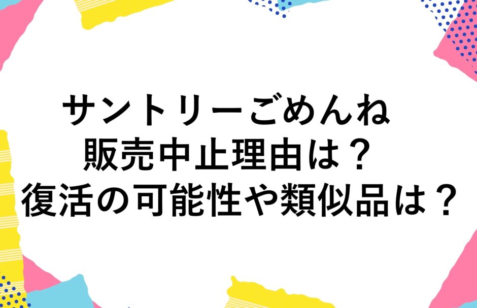 なんてアナタのために、サントリーごめんねの販売中止理由や復活の可能性、類似品について調査してまとめました!