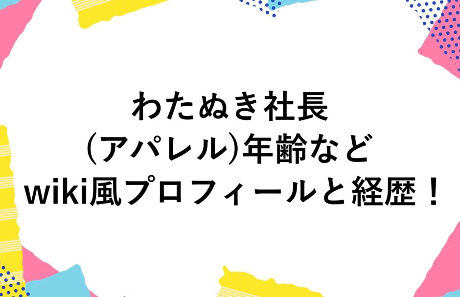 そんなアナタのために、わたぬき社長(アパレル)さんの年齢などwiki風プロフィールと経歴について調べてまとめました!
