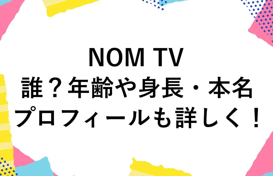 なんてアナタのために、NOM TVさんって誰?年齢や身長・本名などプロフィールも詳しく調べてまとめました!