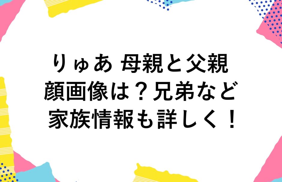 なんてアナタのために、りゅあさんの母親と父親の顔画像は?兄弟など家族情報も詳しく調査してまとめました!