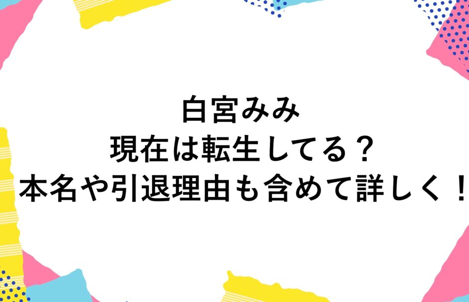 なんて疑問をお持ちのアナタの為に、白宮みみさんの転生情報や、本名、引退理由まで調査、まとめました。