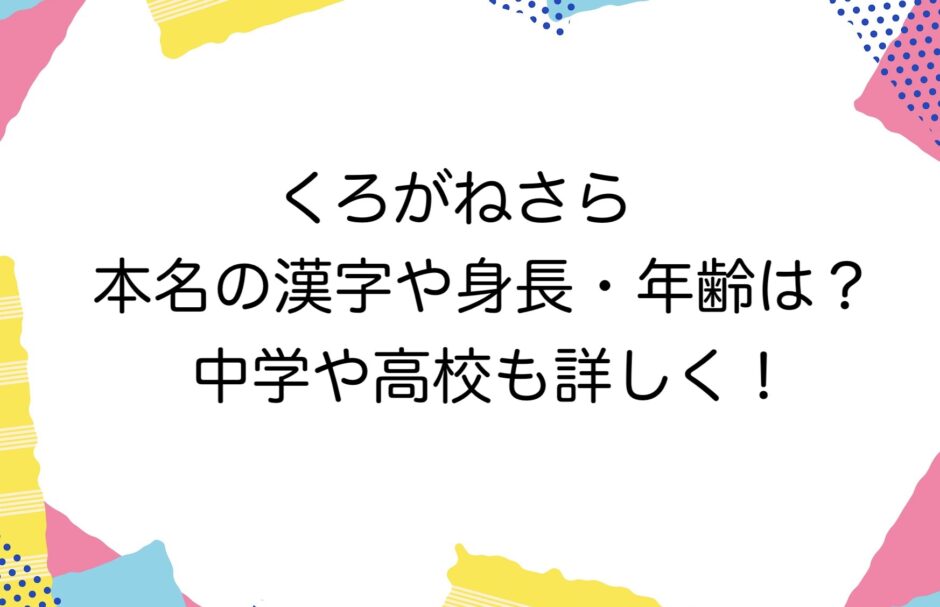 くろがねさらの本名の漢字や身長・年齢は?中学や高校も詳しく!